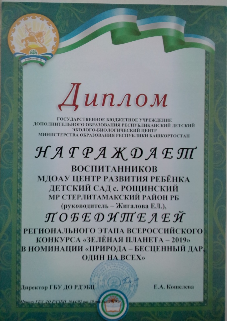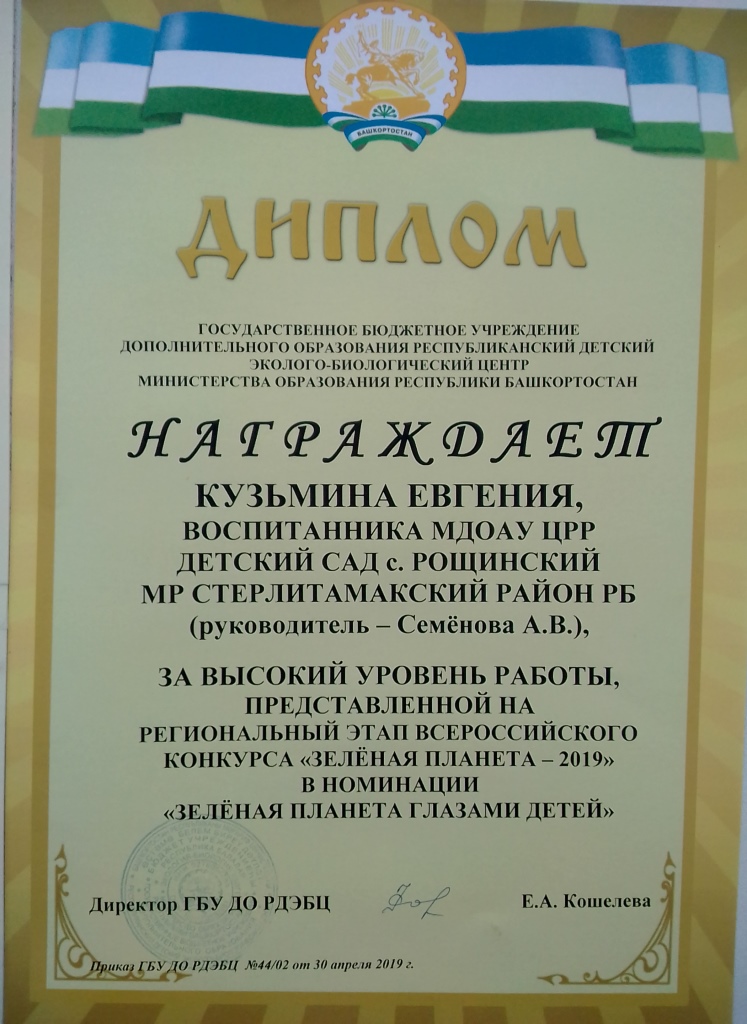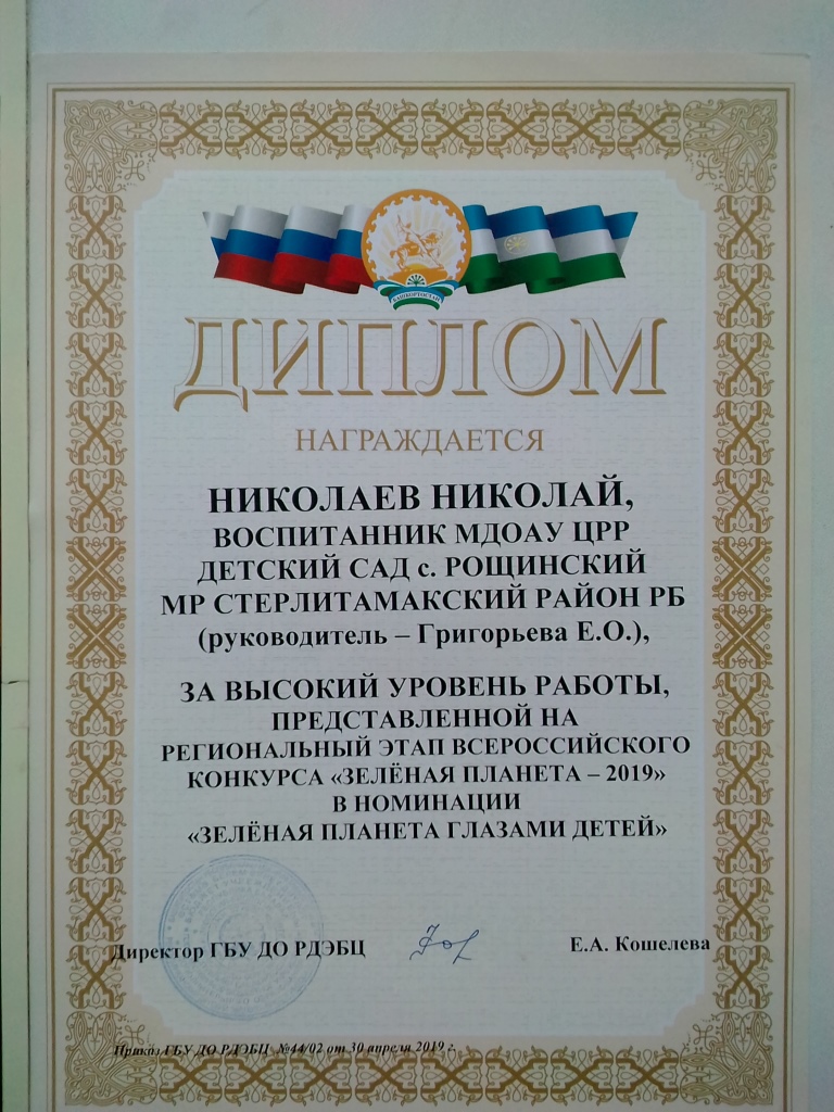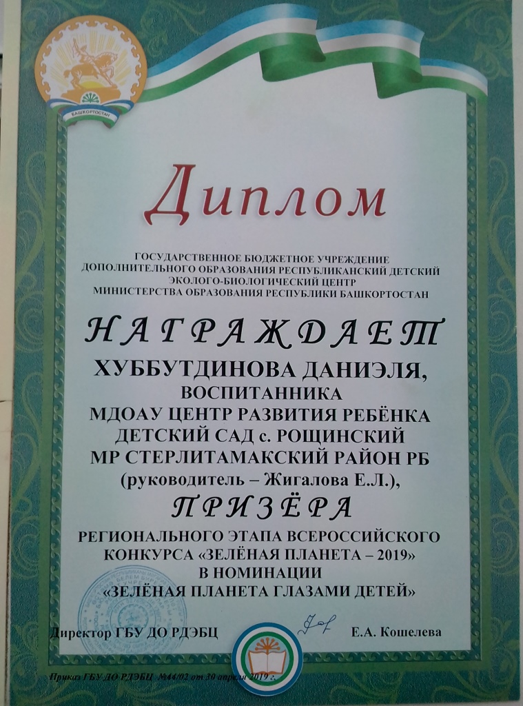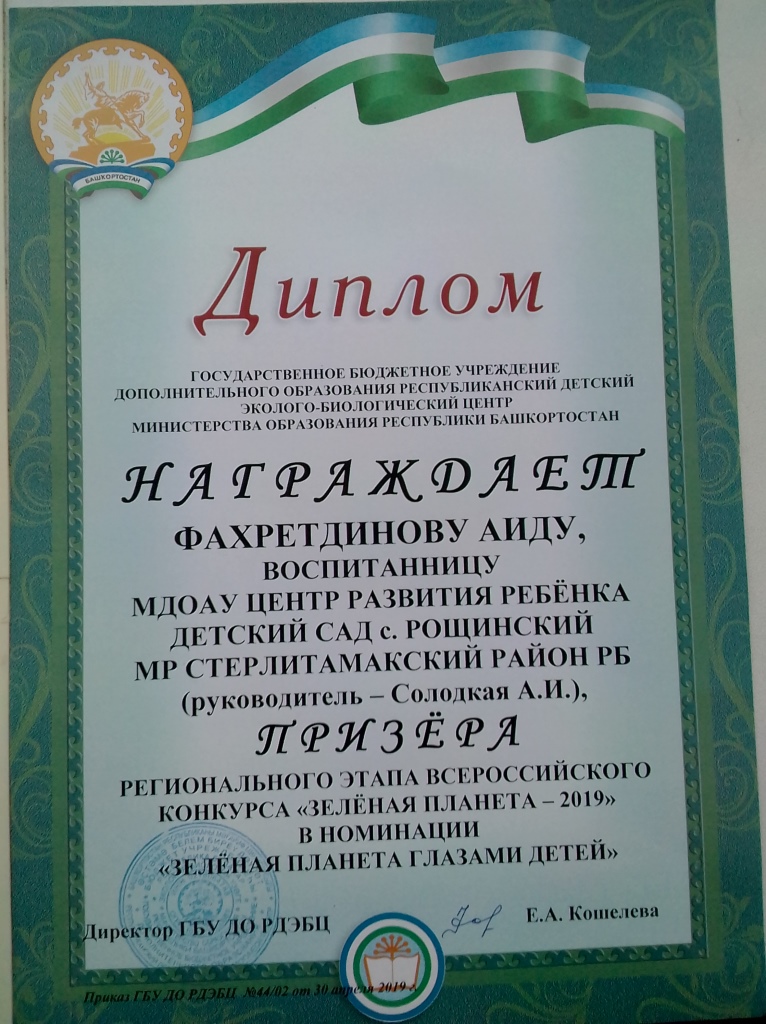 Также педагоги и воспитанники МДОАУ ЦРР детский сад с.Рощинский принимали участие в стали победителями и призерами регионального этапа Всероссийского конкурса «Зелёная планета»: