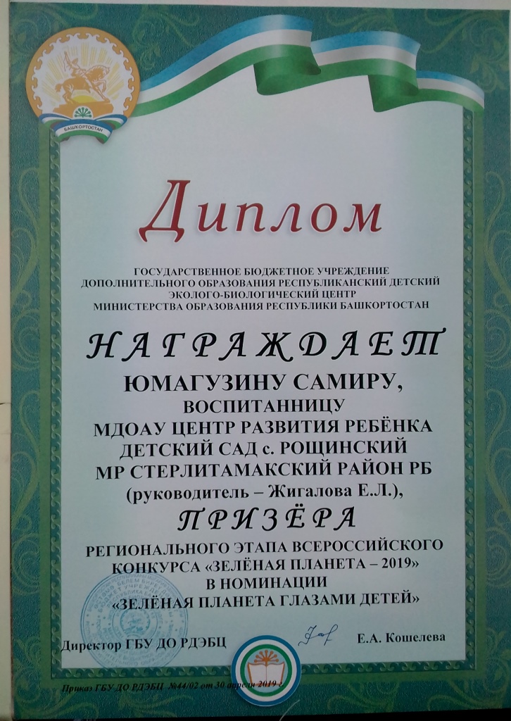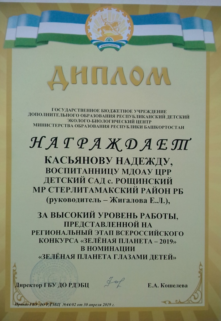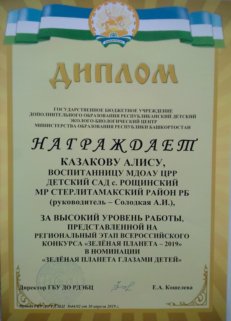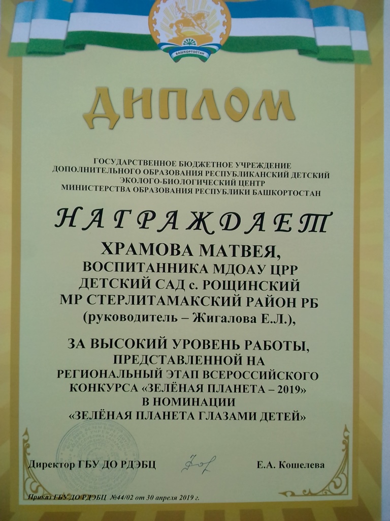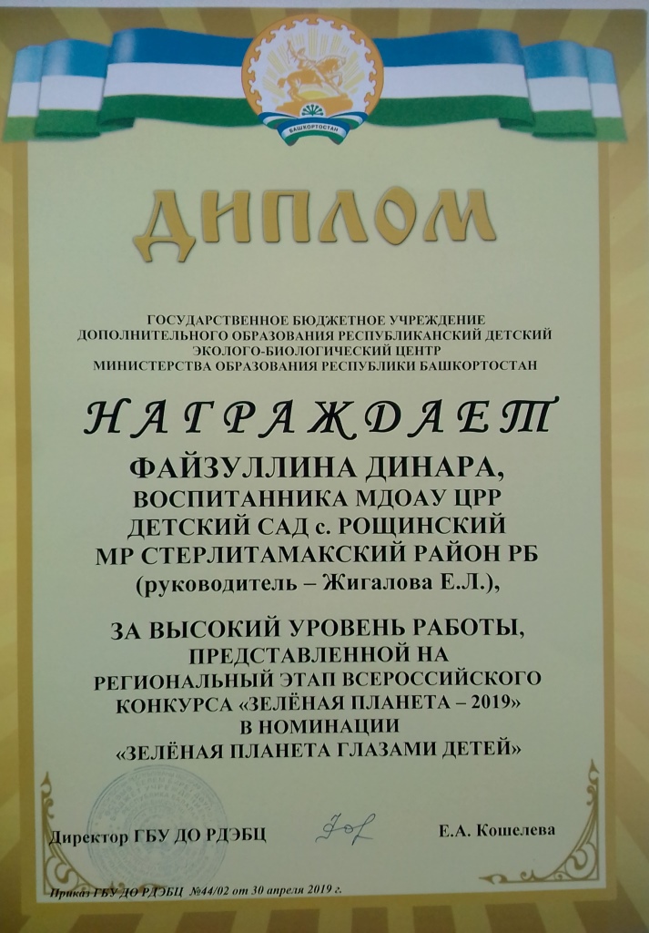 Также педагоги и воспитанники МДОАУ ЦРР детский сад с.Рощинский принимали участие в стали победителями и призерами регионального этапа Всероссийского конкурса «Зелёная планета»: