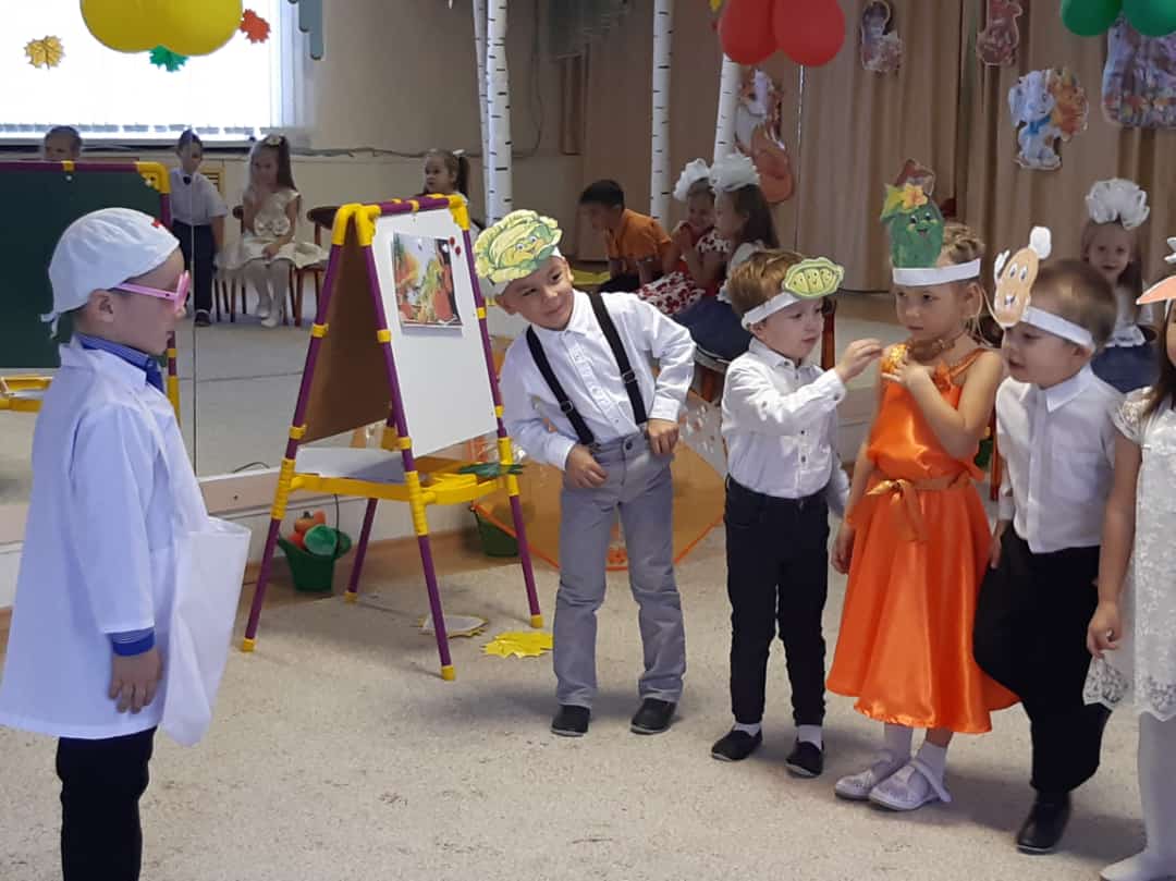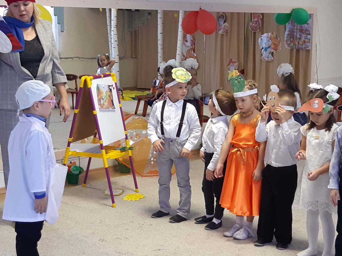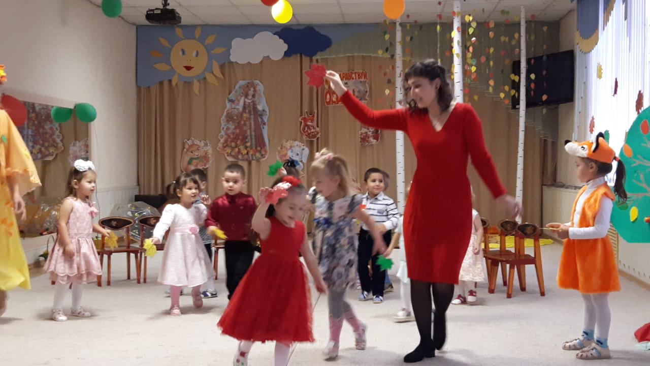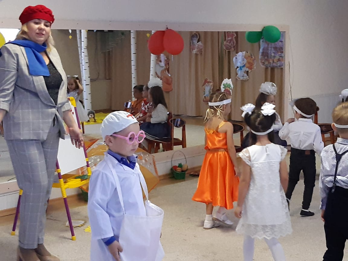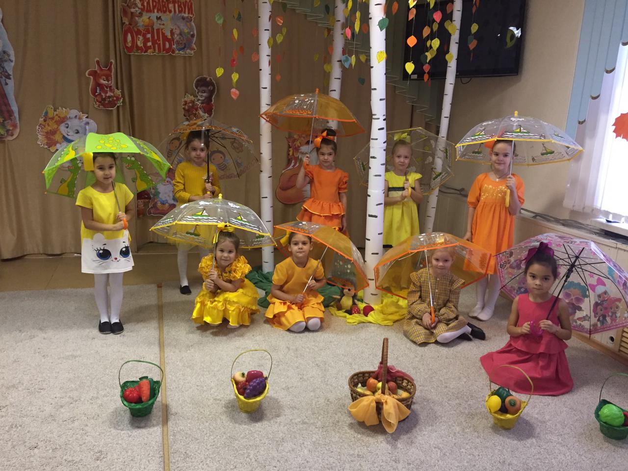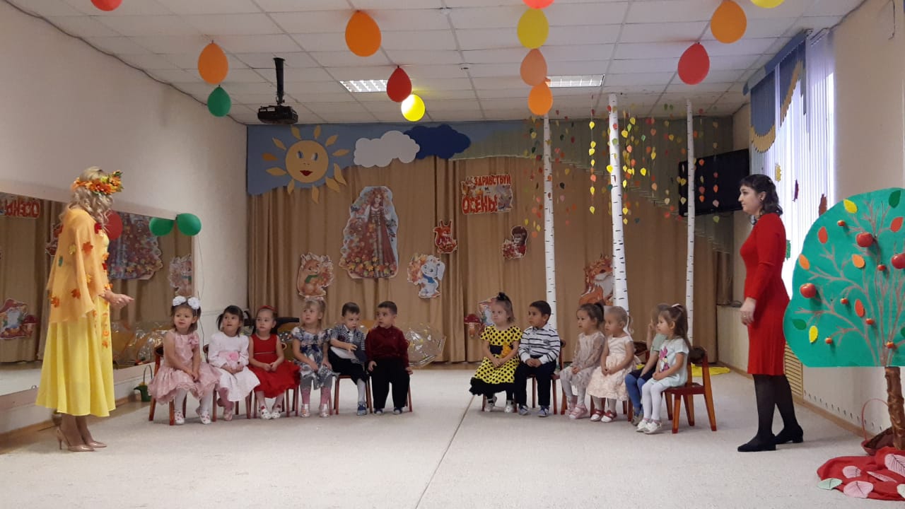 В младших группах ребята танцевали с осенними листочками, пели песни, играли в игры. В средние группы приходила Осень и ворона Каракара, которая принесла волшебный зонтик и поиграла с ребятами в увлекательную игру. Детям доставило это удовольствие и праздничное настроение