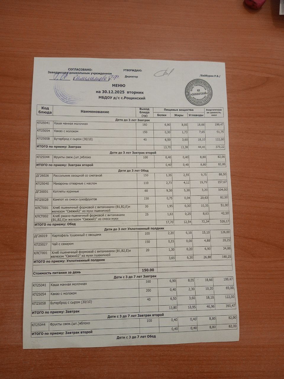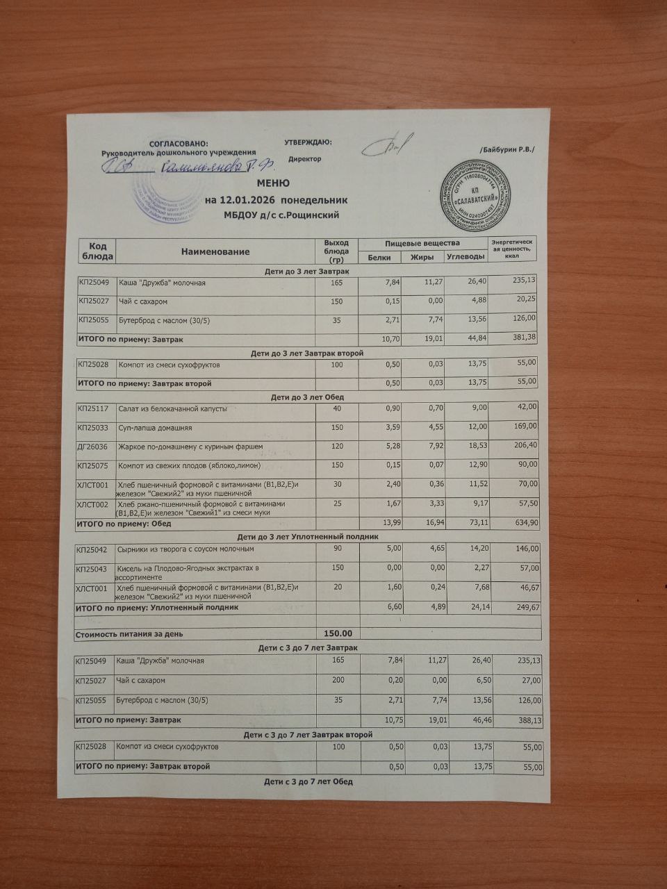 Десятидневное меню