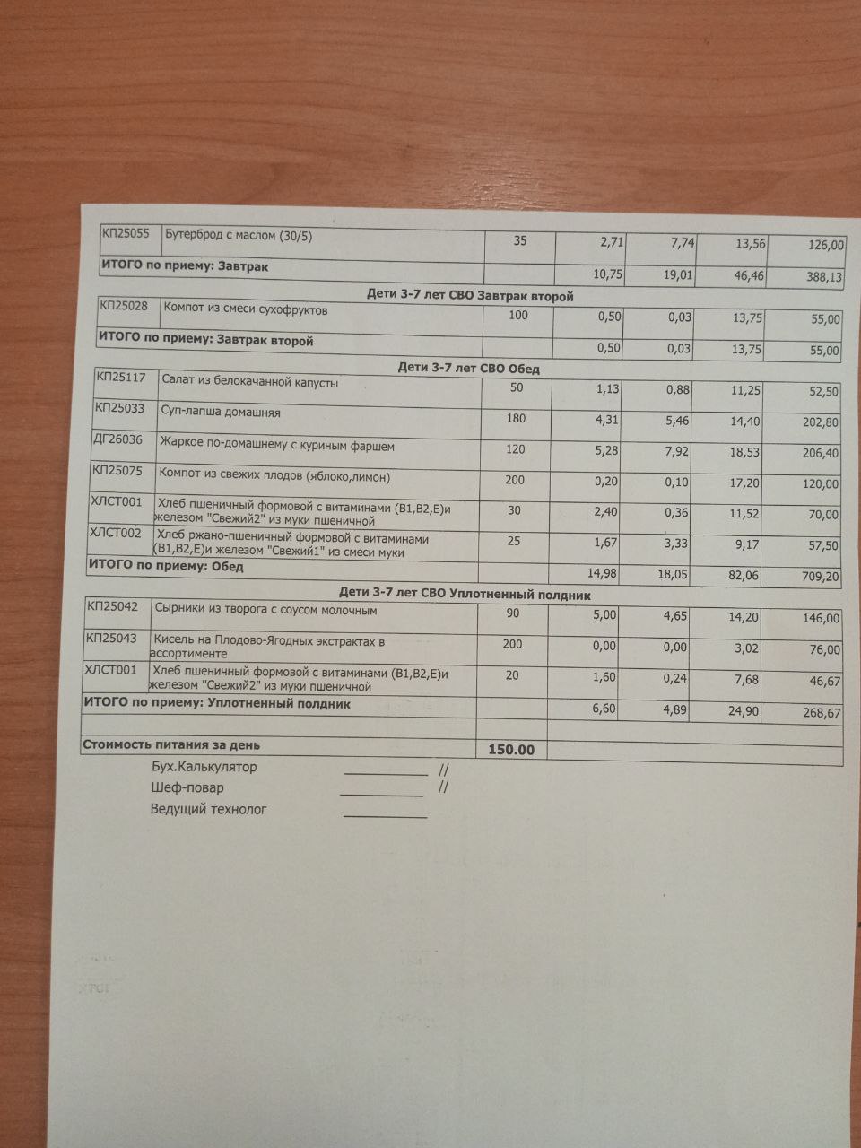 Уплотненный полдник