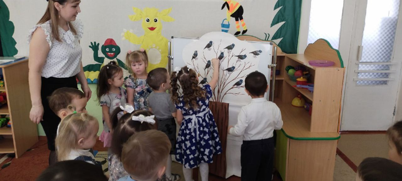 Воспитатель высшей квалификационной категории Солодская Анастасия Николаевна провела ОД по формирования элементарных математических представлений на тему "Скворцы прилетели" в младшей группе. Дети в игровой форме закрепили представление о скворечнике, его форме, величине, количестве.
